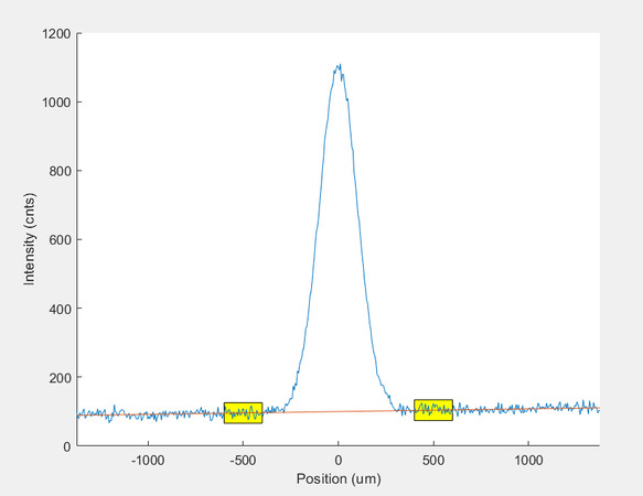 It should be noted that errors may occur using this method if the beam is so large or off centered that the ±6σ ROI extends outside the visible frame. In such cases, this method may not be able to find a suitable background correction and may not have enough data points to compute accurate moments.