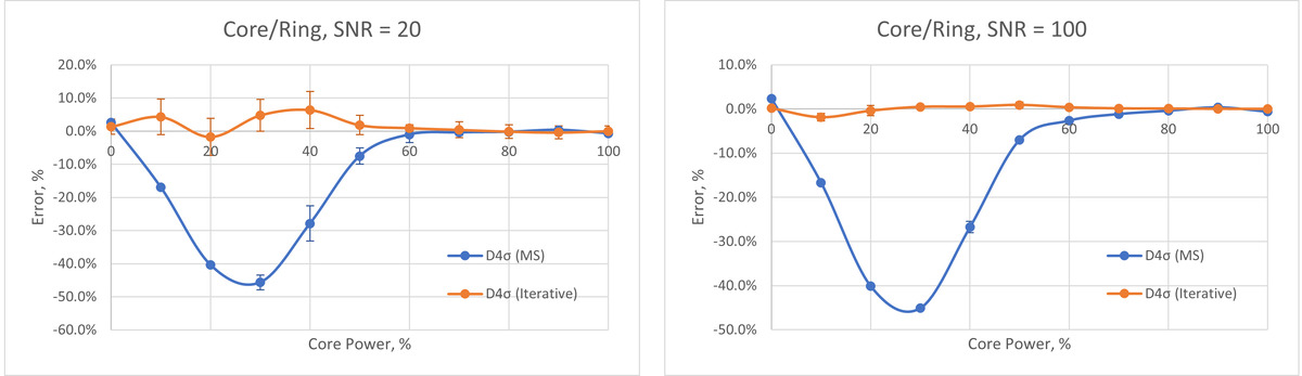 The Ring/Core beams have been studied as a percentage of total power contained within the Core. When the Core is