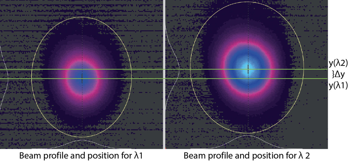 Another challenge that arises when developing a compact blood glucose monitor is the different beam position for any given wavelength for off-the-shelf QCLs. To detect glucose in the skin, it is necessary to take measurements using a variety of wavelengths in the infrared range. But with a tunable laser, as soon as the wavelength is changed, the beam moves (a.k.a. "beam hopping"). For the newly developed QCL arrays it is necessary to test if all beams fulfill the positional and beam-shape requirements. In case of mis-aligned optics the beam enters the skin at slightly different positions (up to about ¼ mm) and – analogous to wrongly corrected vision – the thermal lens becomes blurred. When the DiaMonTech team changes the wavelengths, they use the Pyrocam to measure the focus position, which is marked with crosshairs. The BeamGage software records the changes in crosshair position for accurate tracking. The wavelengths that provide the most precise measurements can then be determined, based on the findings from these readings.