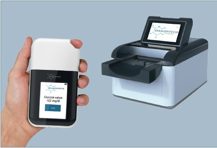 Many non-invasive methods for measuring blood glucose have failed because they were not accurate enough: Glucose values in body fluids such as tears, saliva or sweat do not correlate sufficiently with glucose values in blood. The situation is different for skin fluid (interstitial fluid – ISF). Measurements taken on ISF at body parts with good capillarization correspond well to the actual amount of glucose in the blood. DiaMonTech was founded in 2015, after years of research at the Goethe University Frankfurt, Germany. Based on this research, the company has developed a non-invasive blood glucose monitor.