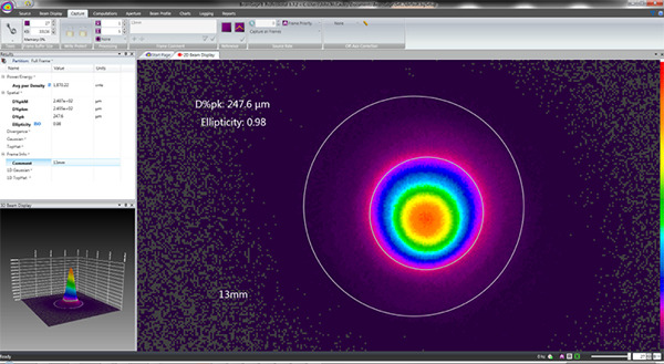 Their routine is to take a series of beam profiles to compile an exploded view of the caustic with 2D profiles. They place the profiler where they expect the focus to be, raise the profiler 13mm, and take 27 beam profiles in 1mm increments until the entire caustic has been imaged at +/-13mm from focus.