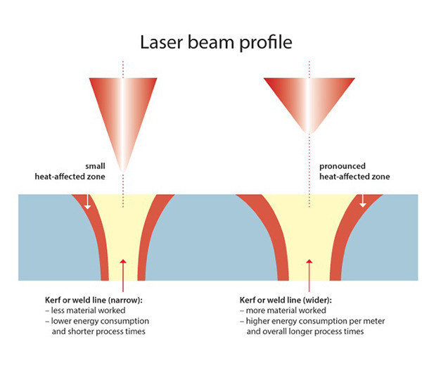 Figure 3. Laser beam profile; small heat-affected zone, pronounced heat-affected zone