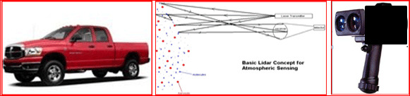A telescope is then used to collect data on the scattered light and calculate the distance to the target. Since the light is traveling at the speed of light — 299,792,458 m/s — the device is able to calculate how long it has taken the light (photons) to travel from the time it leaves the device and the telescope receives the returning photons. Just about anything will scatter the light (photon): dust, vapors, aerosols, and, in this application, a moving object.