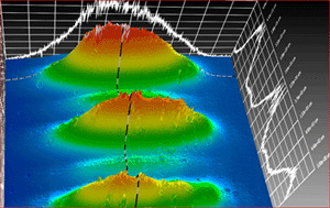 Ophir-Spiricon BeamGage® Professional software Ophir-Spiricon USB SP620 profiling camera 2” Opalescent diffuser 25mm CCTV lens “C” mount ND1 filterWhen simply firing the beam directly onto the SP620 profiling camera, the beam scattered across the area of the array and made it impossible to distinguish the three diodes, as seen in Figure 3.