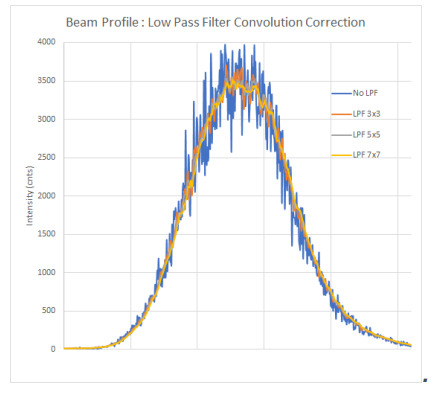 By using the Low Pass Filter (LPF) function in the BeamGage software the observed speckle can be significantly reduced as it turns a beam profile with a lot of spatial noise into an optimized image.