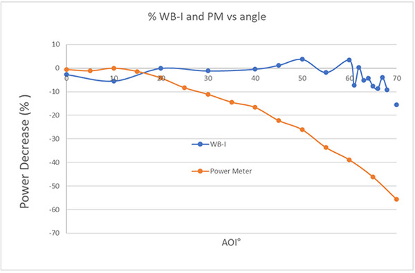 The opaque diffuser used in the WB-I allows measurement of divergent beams up to 140° AOI, much better than other techniques such as knife edge, based on the usage of a power meter. Figure 7 demonstrates the differences between the measurements of a photodiode sensor vs. a WB-I with camera. With increasing angles, the power readings of the photodiodes are no longer reliable.