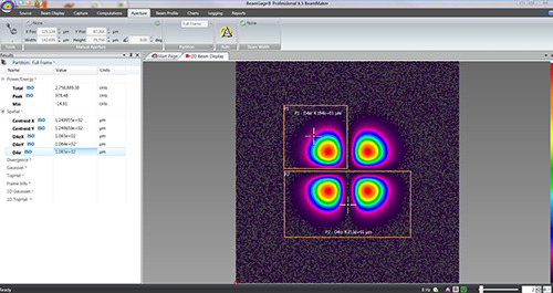 BeamGage Professional Partitions with Multiple Beams on One Display with Individual Results