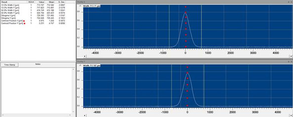 7. Illuminate the detector with a beam and try to center it as close to the 0 as possible. Use the Centroid Position X & Y in your results area to see where the centroid position is in relation to the 0 position.