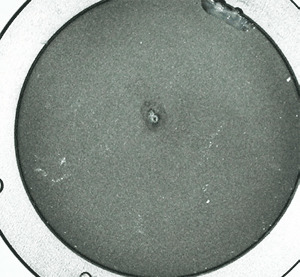 Explanation: Many times an out of tolerance condition can be explained simply by surface contamination induced by environ- mental conditions. Unfortunately, due to the different environments that sensors are used in, it is nearly impossible to conclude exactly what causes the contamination in each scenario. Welding environments are a common source of contamination; however any environment may allow foreign material to be deposited on the sensor if care is not taken. Grease from fingerprints is another common source of contamination and it can be burnt into the surface of the absorber. The use of a form of combustible material to determine beam location prior to sensor use can also contaminate your sensor. Burn paper or any other combustible material used near the sensor can slowly deposit contaminants onto the surface. Unfortunately the contamination can be gradual and uniform in distribution, preventing the end user from noticing a change in the shade of the coating Please refer to Figures 1 and 2.