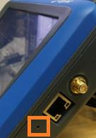 Figure 2 Right side of Centauri Meter with pinhole highlighted - Turn on the Centauri while simultaneously pressing through the pinhole for a few seconds.