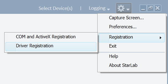 A: When installing StarLab, there is usually no need to uninstall or delete Previous StarLab releases, although it might be best in order to avoid confusion between the StarLab versions, and to keep the PC clean and tidy.If you'd like to uninstall the old version, it's best to do so before installing the new StarLab release. If you uninstall a previous release of StarLab, after installing the new StarLab, you might need to re-register the drivers (and COM object if using it) via "Registration" under the StarLab options menu gear:
